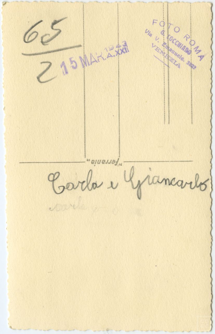 Ritratto dei fratelli Emilio e Carla Dina sul ponte Pasqualigo a Venezia (riproduzione - singola foto), Cocchiaro, G.; (15 marzo 1943)